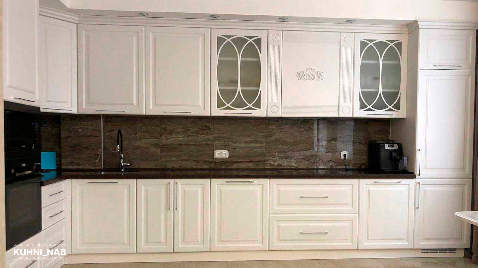 Фасады этой серии - разборные на стяжках, рамка изготавливается из натурального массива дуба или березы (массив из экологически чистых районов России). Филенка разная в каждом виде фасадов: от цветной МДФ до деревянной решетки. Размерный ряд неограничен. Фасады могут быть как прямыми, так и радиусными.